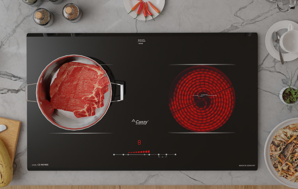 Bếp Điện Từ Canzy CZ 907MIX sử dụng mặt kính Schott Ceran sản xuất tại Đức, mặt kính được làm từ chất liệu gốm thủy tinh có khả năng chịu nhiệt lên đến 1000°C, kháng sốc 750°C. Bề mặt kính chịu nóng lạnh cũng như sự thay đổi đột ngột của nhiệt độ. Độ giãn nở vì nhiệt thấp nên bếp hoạt động rất hiệu quả và cách nhiệt. Mặt bếp tản nhiệt nhanh và được cách điện an toàn với các linh kiện điện tử bên trong thân. Bạn có thể yên tâm sử dụng mà không lo bị bỏng hay điện giật.